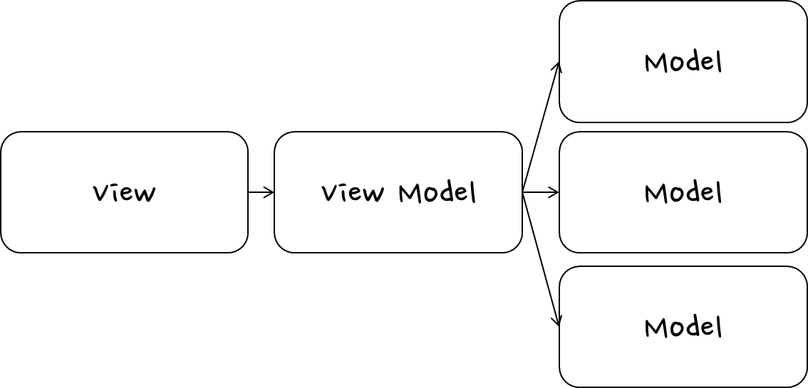 뷰 모델은 화면에 보여주는 정보들만을 가지고 있으며 여러 모델에서 데이터를 읽어오게 됩니다.