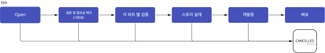 만약 에픽이 검증단계에서 취소가 결정된다면 삭제시키는게 아닌 취소라는 단계로 설정합니다. 우리는 모든 일을 히스토리화할 의무가 있으며 미래의 우리에게 큰 선물이 될 것입니다.